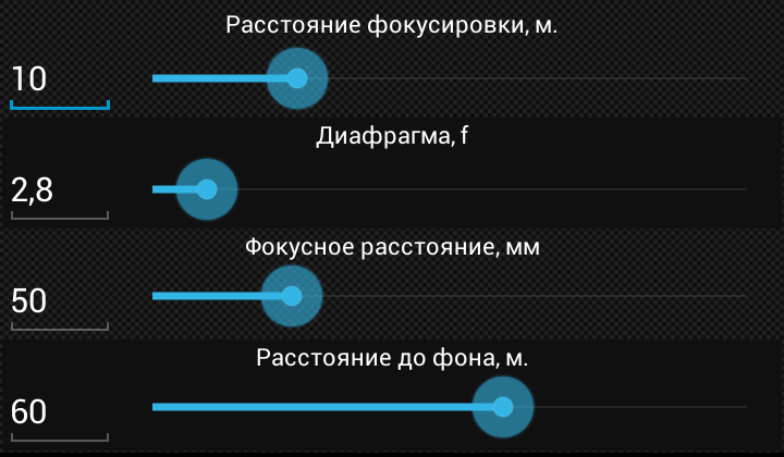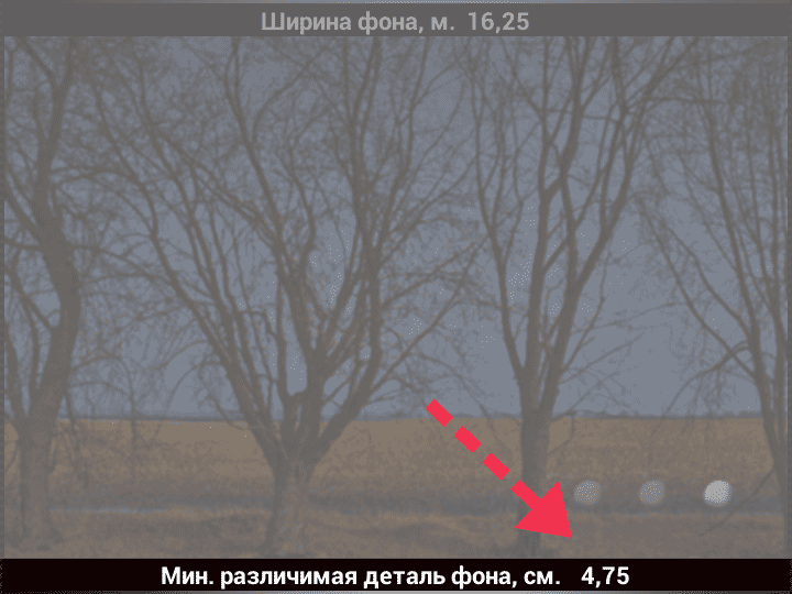 Для начала программа дает вам наглядное представление размытости или резкости фона на вашем снимке. Установите начальные параметры съемки, меняйте их и наблюдайте, как меняется видимая ширина фона и степень его размытости.